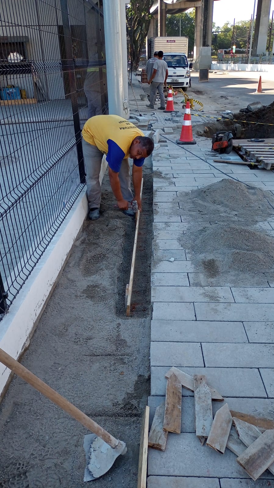 Recuperação da calçada , no acesso ao morro da Cutia .