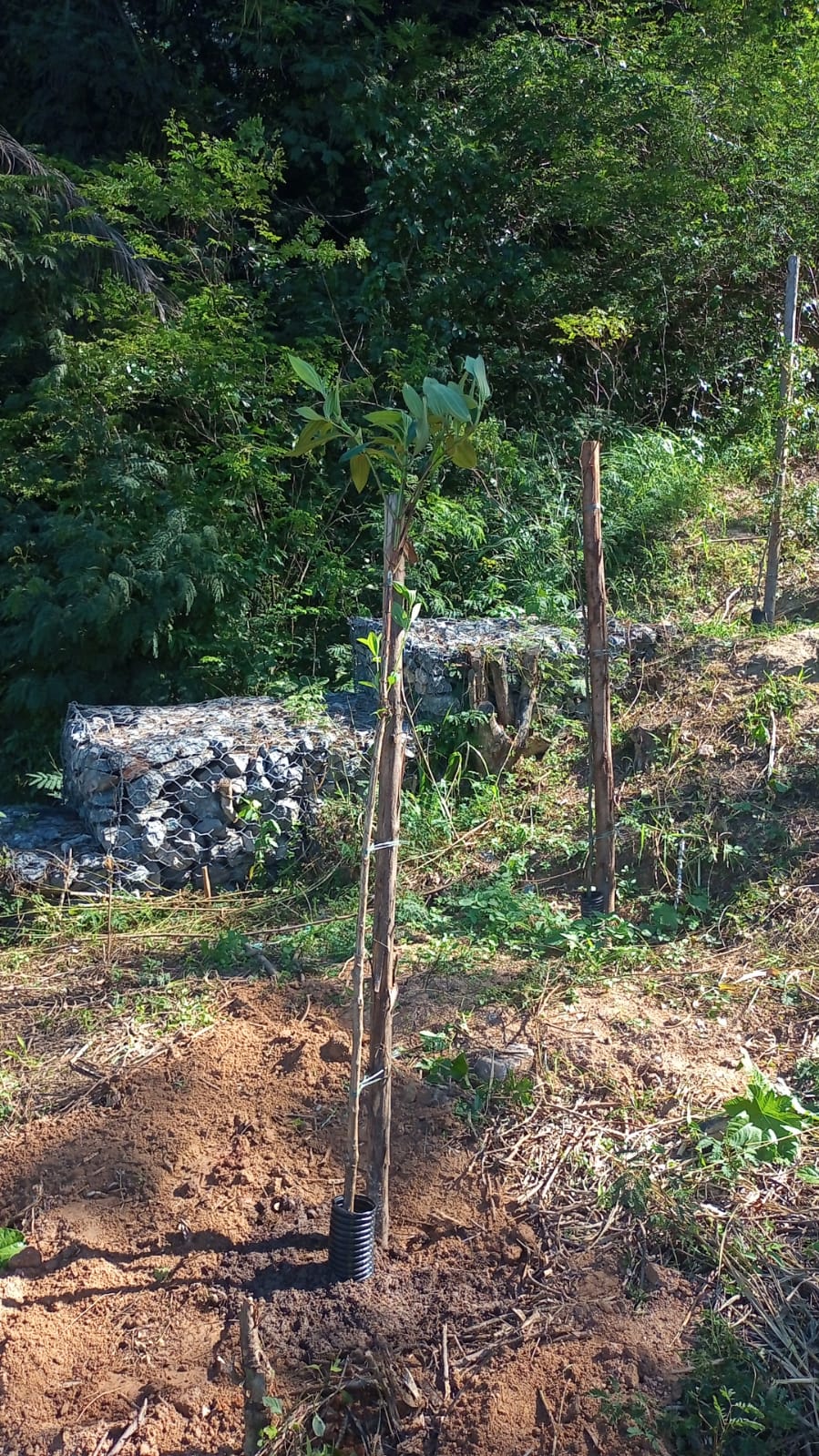 Para realizar os plantios, as equipes realizaram a limpeza do terreno, a abertura de golas e colocação de terra adubada.