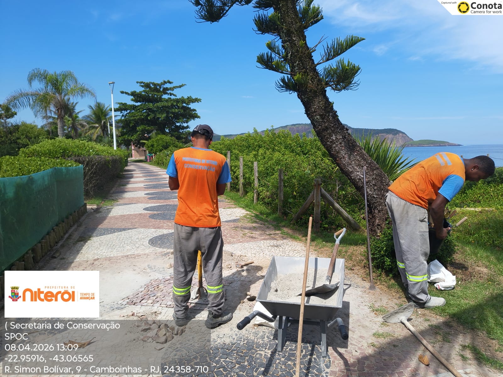 Atualmente, as equipes se concentram em Camboinhas onde estão sendo feitas a recuperação do calçadão em pedra portuguesa e dos bancos de concreto, alem de pintura.