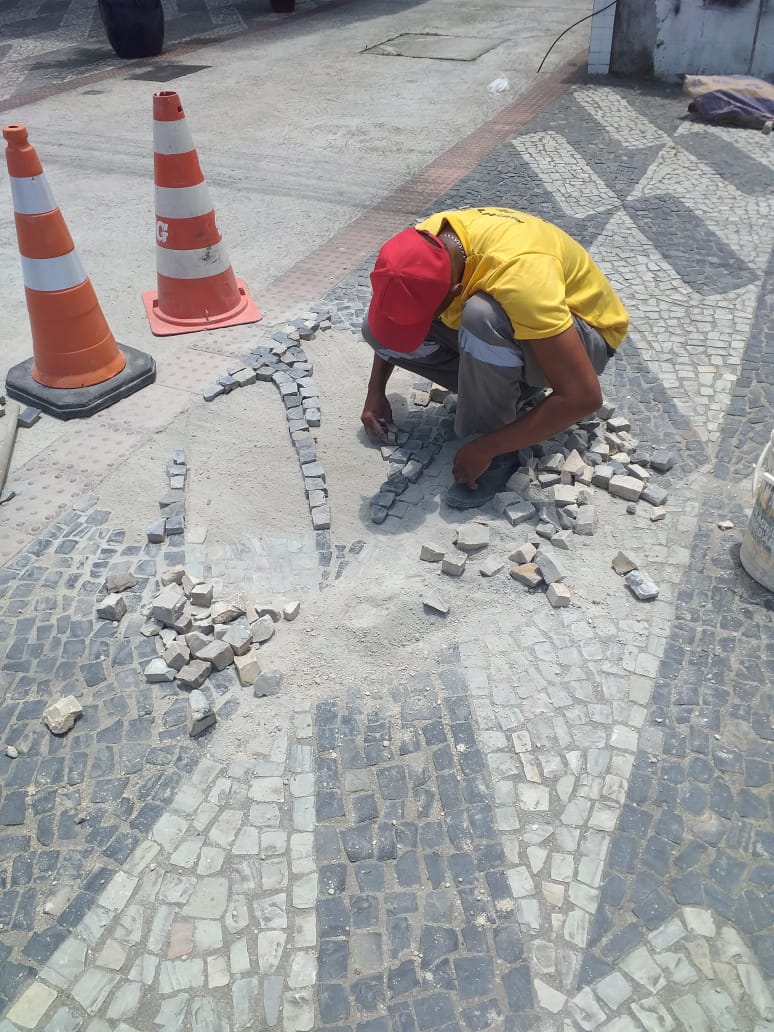 Recuperação de calçadão em pedra portuguesa.