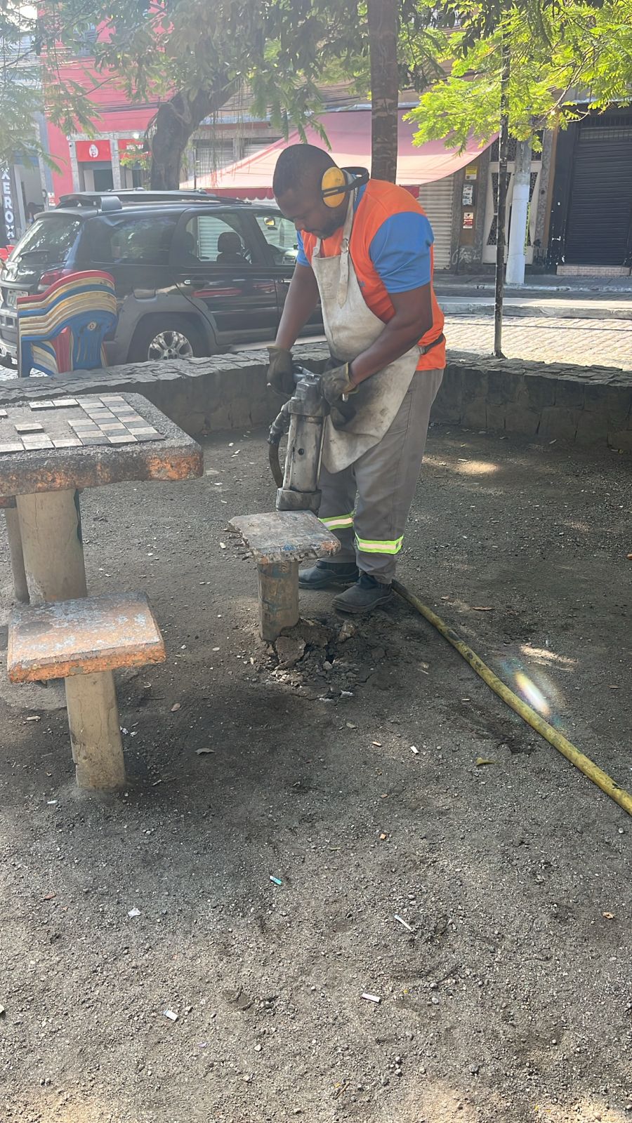Equipe está na Praça Leoni Ramos (Cantareira) realizando uma série de serviços.