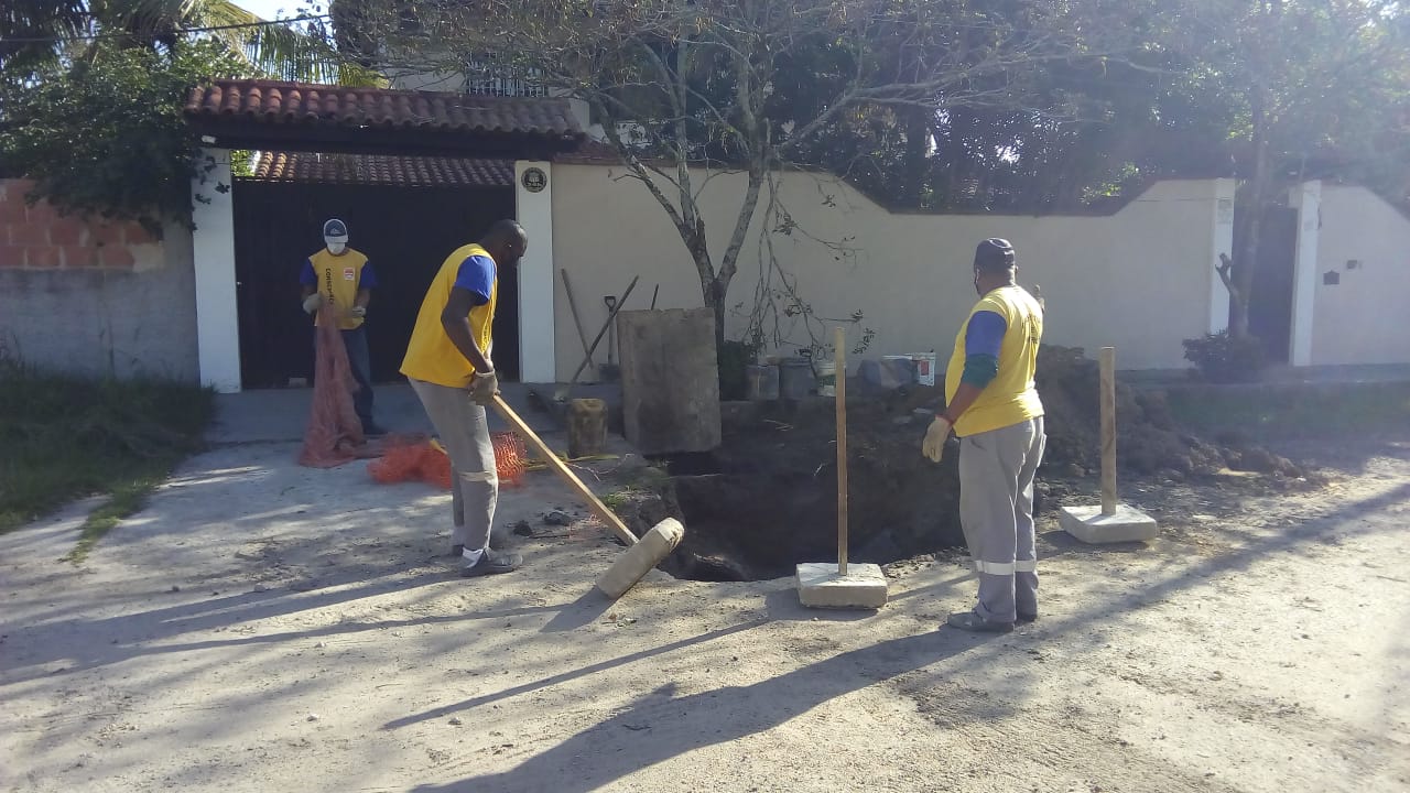 Estrada Francisco da C. Nunes, en frente a Rua Carlos Cardoso, do outro lado da pusta ( Reposicionamento de tampa e reparo em berço