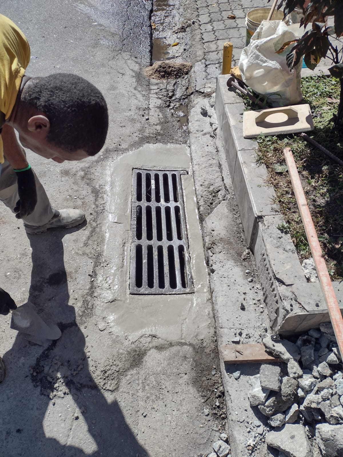 . Colocação de grelha de ferro fundido em trecho com acúmulo de água.
