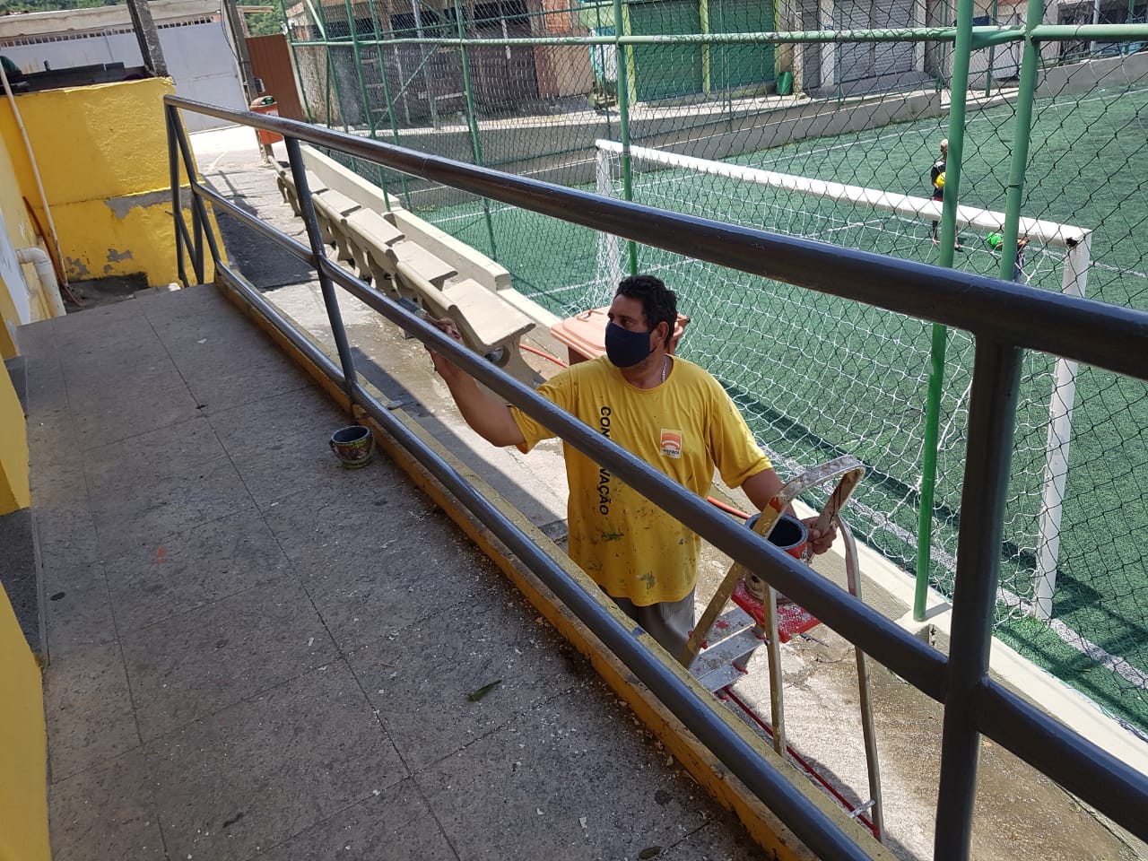 Limpeza e pintura do vestiário e da mureta do campo de futebol