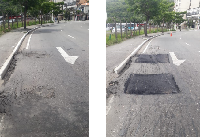 Seguem os serviços de tapa buraco , que foram realizados com massa quente ( CBUQ) , em diversos locais da cidade ontem (23/11/20) .