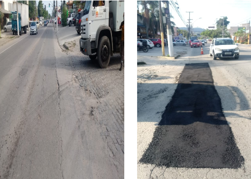 Seguem os serviços de tapa buraco , que foram executados com massa quente ontem ( 17/07/20) .