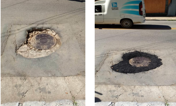 Seguem os serviços de tapa buraco , que foram realizados com massa fria ( CBUF) , em diversos locais da cidade na última quinta-feira (01/04/21).