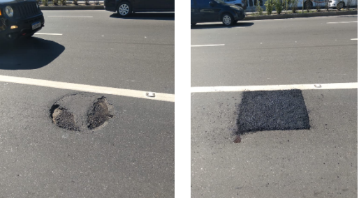 Seguem os serviços de tapa buraco , que foram realizados com massa quente ( CBUQ) , em diversos locais da cidade ontem (02/06/21)