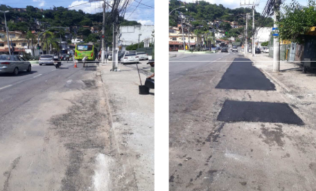 Seguem os serviços de tapa buraco , que foram realizados com massa quente ( CBUQ) , em diversos locais da cidade ontem (04/03/21) .