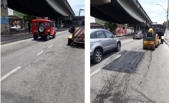 Seguem os serviços de tapa buraco , que foram realizados com massa quente ( CBUQ) , em diversos locais da cidade ontem (05/01/21)