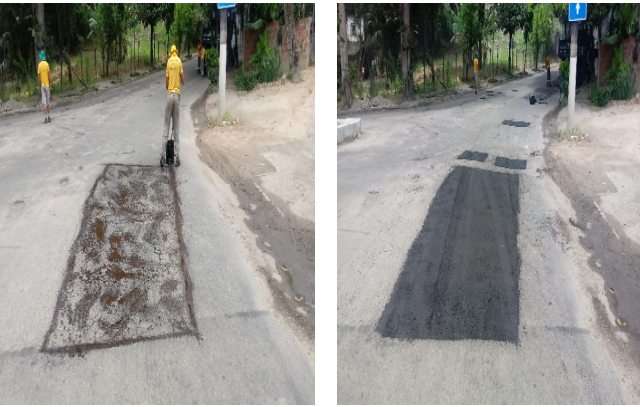 Seguem os serviços de tapa buraco , que foram realizados com massa quente ( CBUQ) , em diversos locais da cidade ontem (05/02//21) .