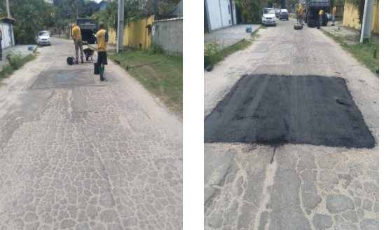 Seguem os serviços de tapa buraco , que foram realizados com massa quente ( CBUQ) , em diversos locais da cidade ontem (05/03/21) .