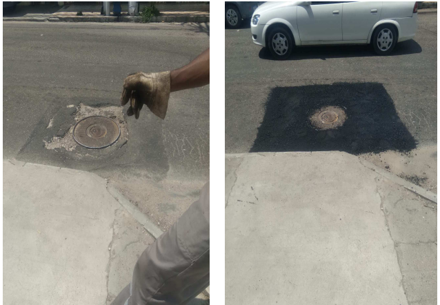 Seguem os serviços de tapa buraco , que foram realizados com massa quente ( CBUQ) , em diversos locais da cidade ontem (06/01/21) .