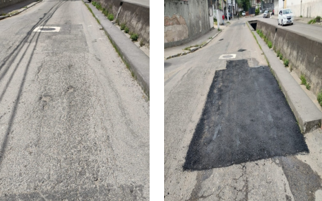 Seguem os serviços de tapa buraco, que foram realizados em diversos locais da cidade com massa quente (CBUQ ) no dia de ontem ,08/04/24