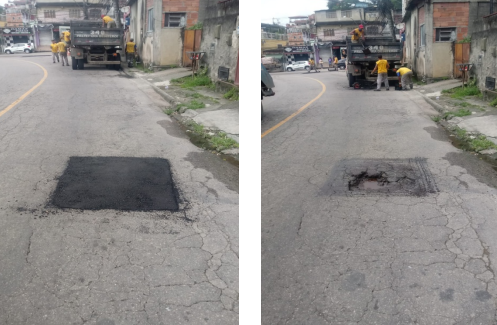 Seguem os serviços de tapa buraco, que foram realizados em diversos locais da cidade com massa quente (CBUQ) , no dia de ontem (09/02/22) .