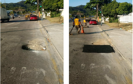Seguem os serviços de tapa buraco, que foram realizados em diversos locais da cidade com massa quente (CBUQ), no dia ontem (10/03/22) .