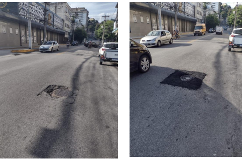 Seguem os serviços de tapa buraco , que foram realizados com massa quente ( CBUQ) , em diversos locais da cidade ontem (15/04/21).