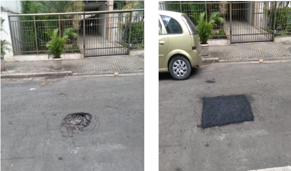 Seguem os serviços de tapa buraco , que foram realizados com massa quente ( CBUQ) , em diversos locais da cidade ontem (10/05/21).