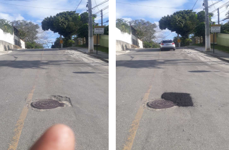 Seguem os serviços de tapa buraco, que foram realizados em diversos locais da cidade com massa quente (CBUQ), na última terça-feira (10/05/22)