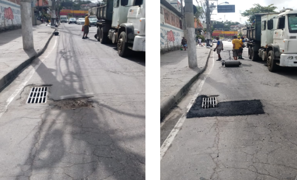 Seguem os serviços de tapa buraco , que foram realizados com massa quente ( CBUQ) , em diversos locais da cidade ontem (10/06/21).