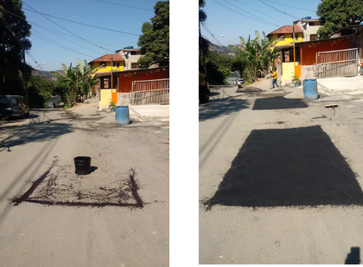 Seguem os serviços de tapa buraco , que foram executados com massa quente ontem ( 10/08/20) .