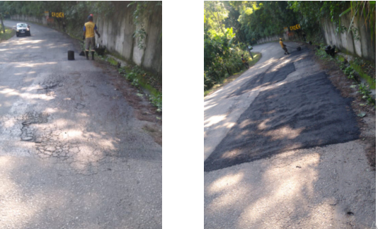 Seguem os serviços de tapa buraco , que foram realizados com massa quente ( CBUQ) , em diversos locais da cidade ontem (11/05/21).