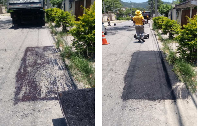 Seguem os serviços de tapa buraco que foram realizados com massa quente (CBUQ) em diversos locais da cidade em 12/01/2021.