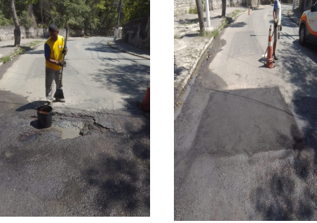 eguem os serviços de tapa buraco, que foram realizados em diversos locais da cidade com massa quente(CBUQ) ontem (12/09/23).