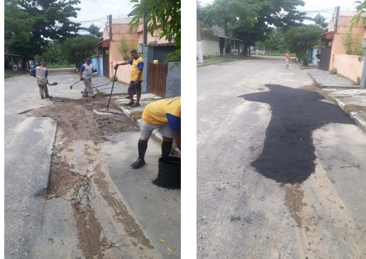 Seguem os serviços de tapa buraco, que foram realizados em diversos locais da cidade , com massa quente (CBUQ ) , na segunda feira (13/03/23) .