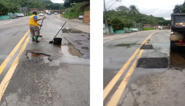 Seguem os serviços de tapa buraco que foram realizados na última quinta-feira (13/01/22) , com CBUQ .