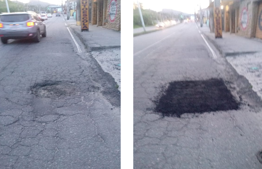 Seguem os serviços de tapa buraco , que foram realizados com massa quente ( CBUQ) , em diversos locais da cidade ontem (14/12/20) .