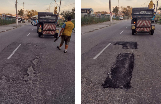 Seguem os serviços de tapa buraco , que foram realizados com massa quente ( CBUQ) , em diversos locais da cidade ontem (15/07/21).
