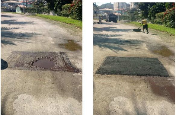 Seguem os serviços de tapa buraco , que foram realizados com massa quente ( CBUQ) , em diversos locais da cidade na terça-feira (17/08/21) e na segunda (16)