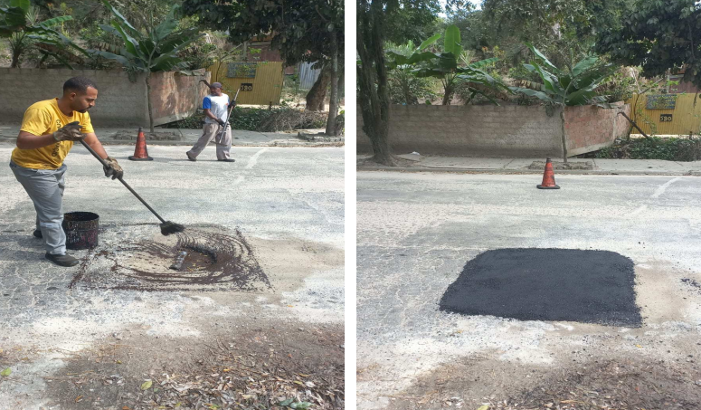 Seguem os serviços de tapa buraco, que foram realizados em diversos locais da cidade com massa quente(CBUQ) ontem (17/07/23).