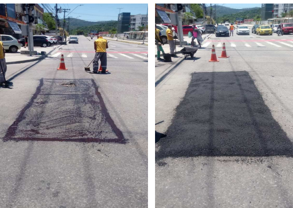 Seguem os serviços de tapa buraco , que foram realizados com massa quente ( CBUQ) , em diversos locais da cidade ontem (19/01/21) .
