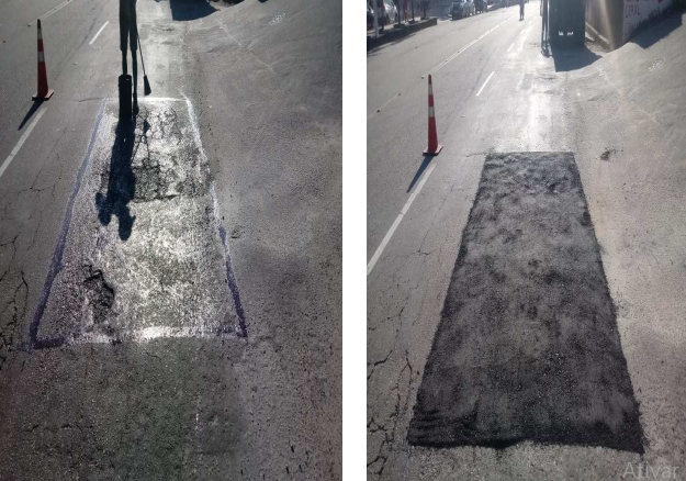 Seguem os serviços de tapa buraco , que foram realizados com massa quente ( CBUQ) , em diversos locais da cidade ontem (20/01/21)