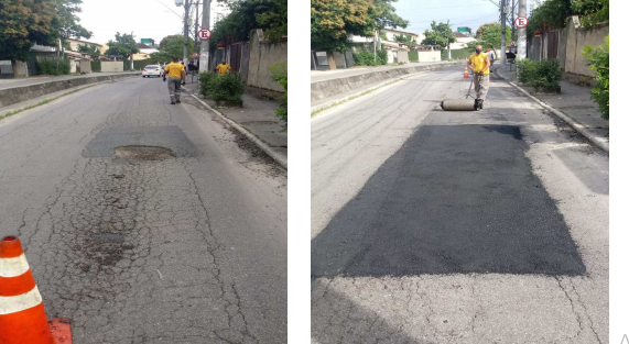 Seguem os serviços de tapa buraco , que foram realizados com massa quente ( CBUQ) , em diversos locais da cidade ontem (21/06/21).