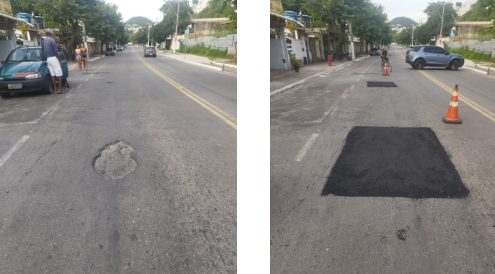 Seguem os serviços de tapa buraco, que foram realizados em diversos locais da cidade com massa quente (CBUQ) no dia de ontem (22/05/23) .