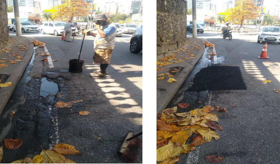 Seguem os serviços de tapa buraco , que foram realizados com massa quente ( CBUQ) , em diversos locais da cidade ontem (23/08/21).