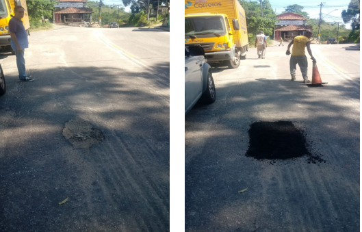 Seguem os serviços de tapa buraco, que foram realizados em diversos locais da cidade com massa quente (CBUQ) , no dia de ontem (24/01/22) .