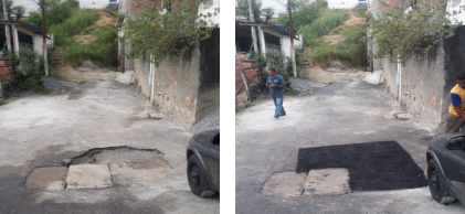 Seguem os serviços de tapa buraco, que foram realizados em diversos locais da cidade com massa quente (CBUQ) no dia de ontem (24/08/22) .