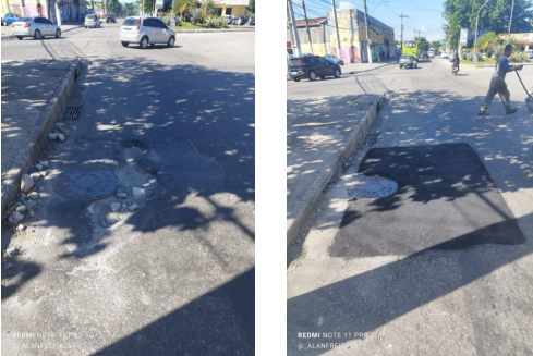 Seguem os serviços de tapa buraco, que foram realizados em diversos locais da cidade com massa quente (CBUQ) na última terça (25) e segunda-feira (240