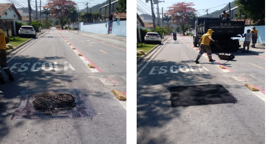 Seguem os serviços de tapa buraco , que foram realizados com massa quente ( CBUQ) , em diversos locais da cidade ontem (25/08/21).