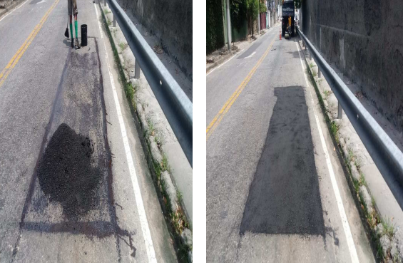 Seguem os serviços de tapa buraco , que foram realizados com massa quente ( CBUQ) , em diversos locais da cidade ontem (26/01/21) .