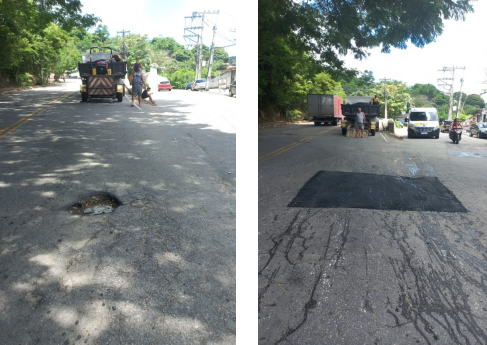 Seguem os serviços de tapa buraco, que foram realizados em diversos locais da cidade com massa quente (CBUQ ) no dia de ontem ,26/02/24 .