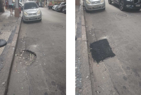 Seguem os serviços de tapa buraco, que foram realizados em diversos locais da cidade com massa quente (CBUQ) no dia de ontem (26/04/23) .