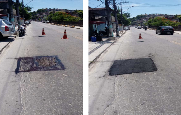 Seguem os serviços de tapa buraco , que foram realizados com massa quente ( CBUQ) , em diversos locais da cidade ontem (27/01/21) .