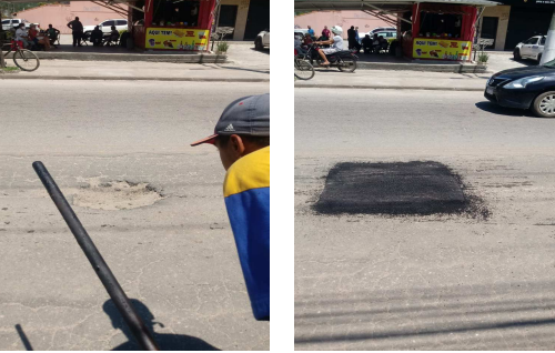 Seguem os serviços de tapa buraco , que foram realizados com massa quente ( CBUQ) , em diversos locais da cidade ontem (29/11/21).