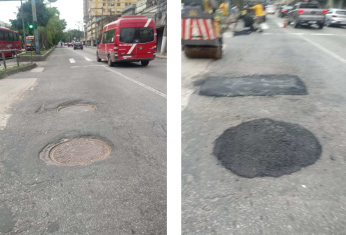 Seguem os serviços de tapa buraco, que foram realizados com massa quente (CBUQ) , no sábado (19/02/22) .
