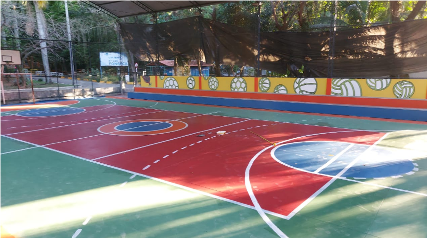 A quadra esportiva do Horto do Fonseca está novinha em folha. Acaba de receber pintura.